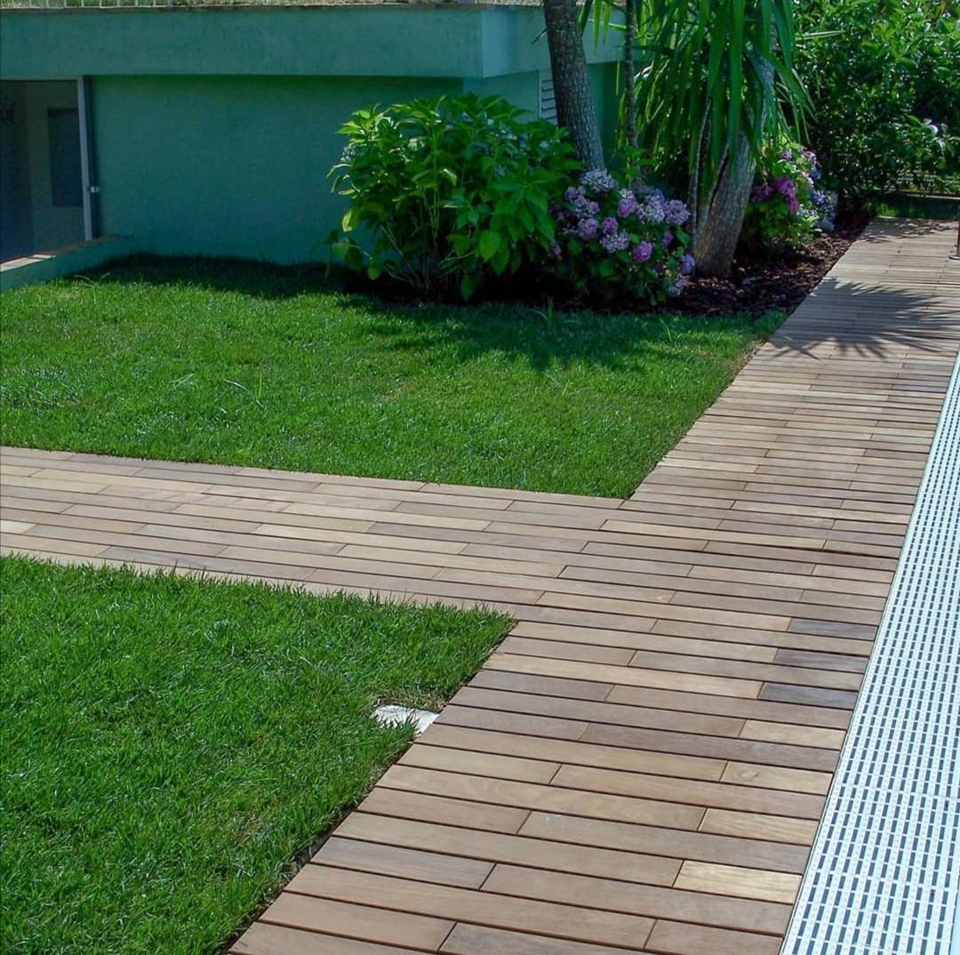 Pavimento tradizionale per esterno in legno massello in essenza di